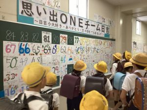 一番に登校した子どもから「わあー、すごい。」「見て見て!これ書いたのは僕。」「これいいなあ。」という歓喜の声が校舎に響き渡りました。