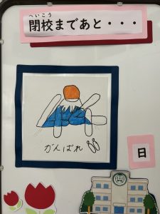 閉校まで後44日。1月15日(木)に1年生が生活科の学習で凧揚げを行いました。まずは、真っ白な凧に自分の好きな絵を描くところからスタート。「何を描こうかな?」「高くあがるといいな」と、子どもたちはワクワクしながら準備を進めてきました。