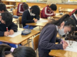 閉校まで後34日。本日、6年生が泉中学校を訪れ、体験入学に参加しました。午前中は2クラスに分かれ、美術と社会の授業を体験。中学校ならではの専門的な学びに、皆真剣に取り組んでいました。その後の交流会では、じゃんけん列車や二人三脚を行い、中学生のリードで体育館が笑顔に包まれました。最後には全員で校歌を歌い、心の距離も縮まったようです。お弁当の後は、午後の授業参観や生徒会による学校生活の説明があり、最後は楽しみにしていた部活動見学へ。2か月後の自分を想像しながら、充実した一日を過ごすことができました。