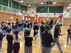 閉校まで残り14日。「大好きを伝えよう!」という5年生の力強い言葉で幕を開けた6年生を送る会は、日吉クイズや思い出シルエット、借り人協力など、縦割り班ごとに趣向を凝らした出し物で大盛り上がり。全校児童が笑顔で交流する素敵な時間となりました。会の終盤、下級生から手作りのプレゼントを贈呈。6年生がそれらを身につけて体育館の前列にずらりと並んだ瞬間、会場には「わあ、すてき!」という感嘆の声が響きました。 体育館全体が優しい空気に包まれ、卒業を前にまた一つ、大切な思い出が刻まれました。