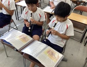 4年生が学習中の音楽室からは、音楽会に向けての合奏練習の音が響いています。