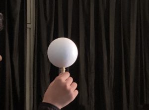 ライトを太陽に発泡スチロールの球を月に見立てて、光の当たり具合を観察しました。