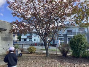 春や夏には鮮やかな緑色だったサクラの葉が、少しずつ黄色や赤茶色に変わり始めています。