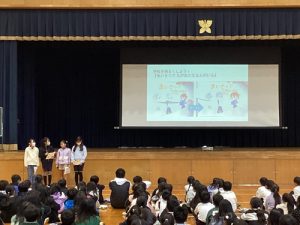 5年生は図工で行った「笑顔が生まれるしかけ」の学習を全校生に発表しました。