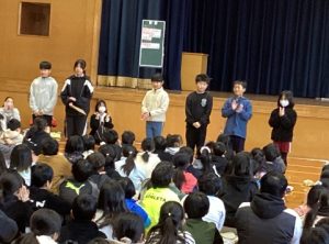 6年生が代表で、任命状を受け取ったあと、各クラスの学級代表が「こんなクラスにしたい!」という決意を全校児童の前で発表しました。