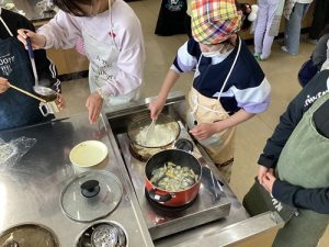 • ごはんの観察:お米が水を吸って膨らむ様子や、沸騰して泡が出てくる様子を観察しました。火加減を調整しながら、おこげができないかドキドキでした。
