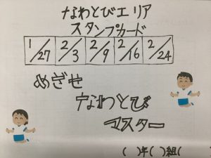 【体育委員会】外遊びをさらに盛り上げているのが、体育委員会の「なわとびエリア」です。 「休み時間にたくさん体を動かしてほしい」という願いを込めて、エリアでなわとび練習をした時に貯まるスタンプカードを準備しました。カードを手に、寒さに負けず元気いっぱいなわとびに挑戦する児童が増えています。