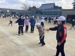 お兄さん・お姉さんの頼もしいサポートのおかげで、1年生や2年生も安心して縄の中へ飛び込んでいくことができました。