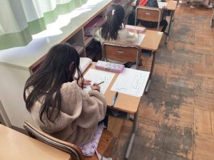 書き初め大会を行いました。 「筆を立てて、ゆっくり書いてみよう」 そんな声が聞こ…