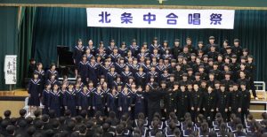 本番も大切ですが、取り組み過程を生徒が体験して学ぶかけがえのない時間としています。「合唱練習を通して自分の意見をしっかりと伝え本音で話すことができるようになった。それは私の力ではなくて意見を伝えやすい雰囲気をつくってくれたクラスのおかげだと思う。いろんな立場のみんなと深く関われて楽しかったし、自分がたくさん成長できた」「3年生合唱を聴いてかっこいいと思ったと同時に、来年は私たちが後輩にかっこいいと思ってもらえる合唱を私たちがしないといけないなと思った。」(以上2年生感想より)こうやって、北条中の歴史が紡いでいかれるのです。