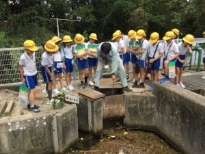 加西市の農業用水が、どこからどのようにやってきているのかを学ぶため、見学に出かけました。最初に訪れた糀谷ダムでは、ダムを作るにあたっての人々の思いや、貯えられた水の多さに驚かされました。その後、飯盛野疎水を見学し、自分たちが暮らす加西市の用水路の様子を確認しました。見学を通して、昔の人々の知恵が随所に活かされていることを知り、その偉大さを感じることができました。
