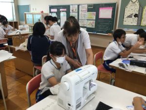 家庭科の学習でナップザック作りに取り組みました!
