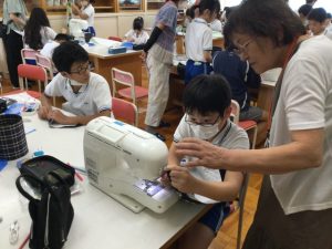 「地域の方が不器用な私にもわかるように、返し縫いや玉止めなどをとても丁寧に教えてださったおかげで、すてきなナップザックができました。これからも、ミシンでいろんなものづくりに挑戦していきたいです。」