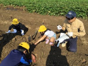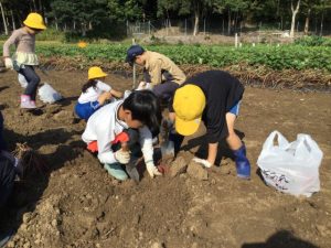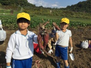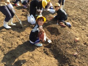 10月27日(月)、播磨農業高校へさつまいも掘りに行ってきました。高校生のお兄さん・お姉さんに手伝ってもらいながら、子どもたちはさつまいもを傷つけないよう慎重に掘り進めていました。自分が植えたつるから、たくさんのさつまいもが収穫でき、子どもたちは大興奮でした。収穫したさつまいもは、後日、2年生みんなで「さつまいもパーティー」を開いて楽しみたいと思います。