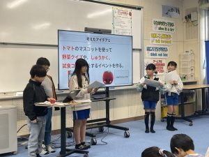 12月18日(木)、3年生によるSTEAM学習発表会を開催しました。テーマは「加西の野菜でみんなを笑顔に」。子どもたちは農業について調べ、農家さんの困りごとを解決するアイデアを考えてきました。グループごとにワークシートにまとめるだけでなく、スライド作成にも挑戦。習ったばかりのローマ字入力に苦戦しながらも、「よしよし畑さんを喜ばせたい」という思いで取り組みました。当日は、社会見学でお世話になったよしよし畑さんをはじめ、学校運営協議会の皆様や森林博士にもお越しいただきました。緊張しながらも、子どもたちは堂々と自分たちのアイデアを発表。発表後には、改善点や新しい取り組みについてのアドバイスをいただき、実り多い時間となりました。いただいた助言をもとに、各グループがアイデアをさらにブラッシュアップし、より良い提案を目指していきます。