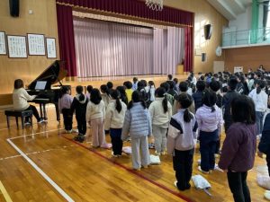 1月7日(水)、令和7年度第3学期の始業式が行われました。始業式では、校長先生から、今年年女・年男となる5年生の児童が書いた「昨年の振り返り」が紹介され、具体的な目標を立てることの大切さについてお話がありました。児童たちが姿勢を正して真剣に耳を傾ける様子や、大きな声で校歌を歌う姿から、新年に向けた「がんばるぞ」という意気込みが感じられました。今年は「何事も“うま(馬)くいく”」と信じ、みんなで挑戦していけるよう、教職員一同でしっかりとサポートしてまいります。