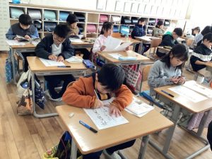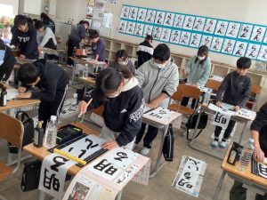 1月9日(金)2時間目に書き初めをしました。学年が高くなるにつれて課題もレベルが高くなりますが、どの学年も、集中して課題に向き合うことができました。