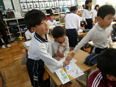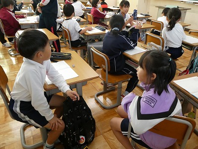 4小が泉小学校に集まり、交流を行いました。2年生は、図工でリース作り、体育でリズムジャンプや大繩を行いました。3年生は、算数で「間の数」を求めたり、道徳で「だれとでも仲良くすることのよさ」について話し合ったりしました。昼休みの運動場は、元気に遊ぶ子どもたちの姿でいっぱいでした。4月からの統合が楽しみです!