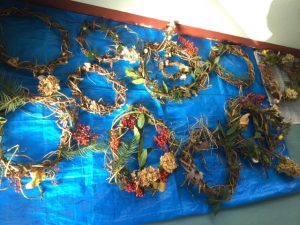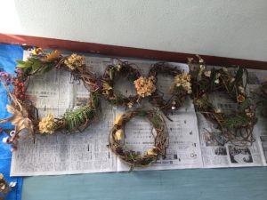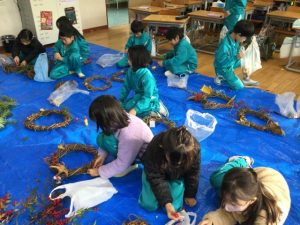 2年生は今日さつまいものつるを使ったリースに飾りをつけていきました!イチョウの葉、もみじ、どんぐり、南天の実、もみの木、月桂樹の葉、1学期に作っていたアジサイのドライフラワーなど自然のものを思い思いに飾り付けていきました。素敵な作品ができました!