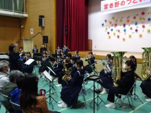 11月16日(日)に、南部公民館で「宮き野のつどい」が行われ、加西中からはボランティア12名と吹奏楽部が参加しました。