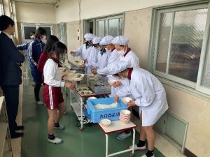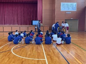 生徒会役員による説明の後、小学6年生は体育・英語・家庭科の授業を体験しました。体育では心身をほぐし、英語ではALTとのコミュニケーション、家庭科では裁縫(波縫い)に挑戦。今年は給食体験も復活し、2校の児童が協力して準備を行い、楽しい時間を過ごしました。放課後の部活動見学も含め、実際の生活に触れたことで多くの児童が安心した様子を見せました。中学校では、新入生の入学を心待ちにしています。