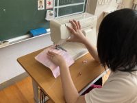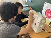職・家の時間に、移動ポケットを作りました。自分で選んだ好きな柄の布をていねいに折り、ミシンでまっすぐ縫えるように集中して取り組みました。ミシンは、少しでも手を離すとずれてしまうので、しっかり押さえながら進めました。最初は難しかったけれど、だんだんとコツをつかんで、きれいに仕上げることができました。完成したポケットを見て、目を輝かせていました。自分で作ったものを使えるのがうれしくて、みんな笑顔でした。早速付けて、学校に通っている姿もみかけます。