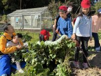 小学部は、10月24日(金)に芋ほりをしました。5月に植えたさつまいもが大きくなっているかな?とドキドキわくわくしながら芋ほりを行いました。クラスごとに協力して蔓を引き、さつまいもを掘りました。収穫したさつまいもは、後日、調理実習などでいただく予定です。