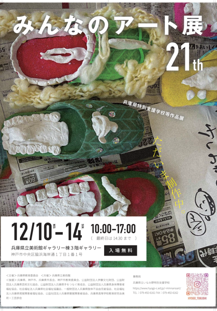 みんなのアート展(作品出展) 兵庫県立美術館で行われている「みんなのアート展」に、各学部の作品を出展しています。 アート展は12月10日(水)~14日(日)開催しています。 詳しくは以下のURLをご確認ください。(兵庫県のHPに飛びます) https://www.hyogo-c.ed.jp/~minnanoart/ ブログ, 全校 2025年12月10日 « 高等部おもてなし