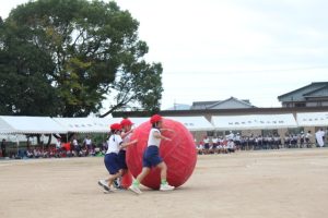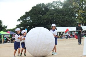 大玉転がしでは、大きな声援に気合を入れてもらって、迫力ある大玉転がしを披露。