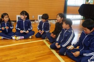 仲良し班で円になり、音楽が鳴っている間にお隣へお隣りへとどんどん回していきます。