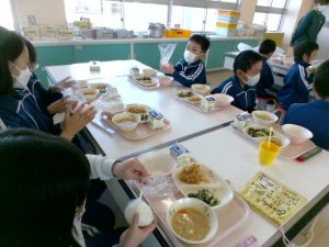 総合的な学習の時間に、3年生のみんなが心を込めて作ったお米を使って、おにぎりをにぎりました。
