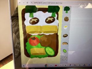 完成したお弁当を画面で見せ合いながら、「おいしそう!」「お腹が空いてきちゃった!」「早く給食にならないかなぁ」と、教室中が笑顔でいっぱいになりました。
