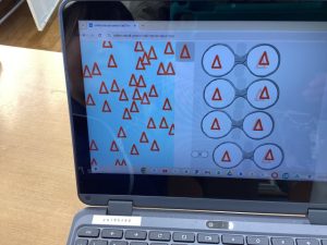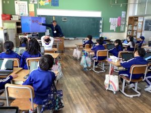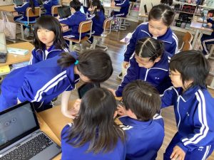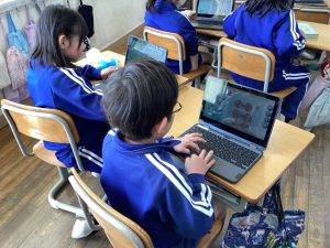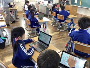 2年生は、ICT支援員の先生と一緒に、プログラミングアプリ「ビスケット」を使って学習しました。