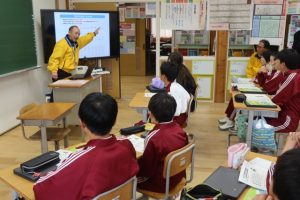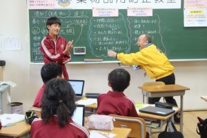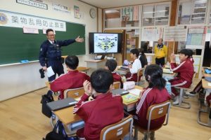 授業の前半では、駐在所のお巡りさんから、薬物の恐ろしさについて具体的なお話を聞きました。