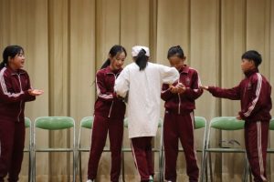 会は5年生の劇で始まり、謎解きゲームや6年生クイズ等、5年生が企画した面白いゲームを行いました。6年生を囲んで、全校生が笑顔で楽しむことができました。
