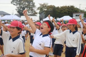 10月11日(土)に、運動会がありました。「空までとどけ~下里っ子の全力~」をスローガンに、子どもたちは練習以上の力を出し切ろうと気合い十分でした。紅・白どちらも勝利に向かってあきらめず、最後までどちらが勝つのか目が離せない戦いでした。