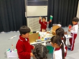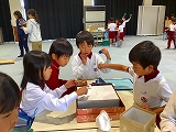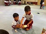 2年生は、生活科の学習でおもちゃづくりをしています。「あそんで 作って くふうして」という学習の一環で、2年生が1年生を自分たちで作ったおもちゃいっぱいの「おもちゃランド」へ招待しました。1年生は、「面白かった。」「いろんなことができて楽しい!」「もう一回したい。」と笑顔いっぱいで活動していました。「おもちゃランド」が成功して満足した2年生でした。来月には子ども園の園児を「おもちゃランド」に招待する予定で、2年生は引き続き楽しみにしています!