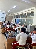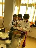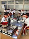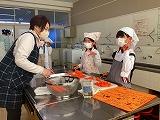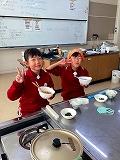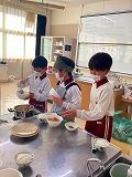 3年生は1、2学級、総合的な学習の時間を使って米や野菜を育てました。その米や野菜を使って調理しました。米は西脇農園さんのご協力のもと、子どもたちが校区内の水田で栽培したもので、野菜は校内の畑で、自分たちで種類を決めて、育て、収穫したものです。今回は「自分たちで育てた野菜とお米でポトフを作ろう」をテーマにしました。自分たちで育てたことで思い入れが強まり、炊いたお米と作ったポトフをおなかいっぱい食べ、大満足の3年生でした。