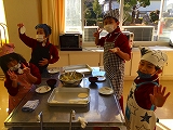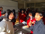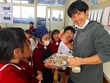 ひまわり学級では、1月22日に畑で収穫した白菜とキャベツを使って、ぎょうざ作りをしました。「全校生に喜んでもらおう大作戦!」と企画して、野菜を包丁で切ったり、ぎょうざの具を皮で包んだりと、協力して調理しました。「おいしい」「ありがとう」と、みんなが笑顔いっぱいで食べてくれて、うれしい気持ちになりました。大大大成功!!