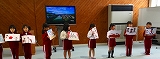 子ども園の子に1年間の行事を描いた絵を見せながら、行事の説明を伝えたり、学校のきまりをスライドで説明したりしました。そして、その後はじゃんけん列車で遊び、子ども園の子たちと交流を深めました。積極的に子ども園の子と関わろうとしており、お兄さん・お姉さんらしい姿を見ることができました。