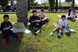 お昼は、赤穂海浜公園で、待ちに待ったお弁当の時間🍙 友達とニコニコ笑顔で、愛情たっぷりのお弁当を食べました。 お弁当の後には、遊具で遊び、元気いっぱい過ごしました。
