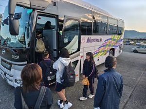6年生が待ちに待った修学旅行がスタートしました。 全員そろって、元気に奈良・京都へ向けて出発しました。