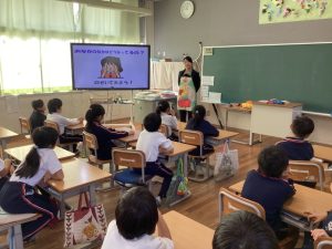 3年生は「ヤクルト おなか元気教室」で、おなかの健康について楽しく学びました。