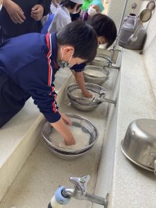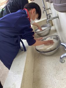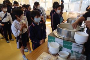 3年生が1学期から米作り体験で作った新米を羽釜を使って炊き上げました。