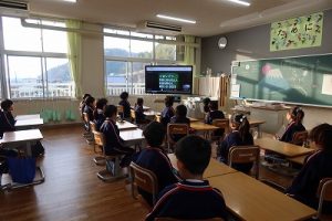どのクラスを覗いても、背筋を伸ばして真剣な表情で画面を見つめる子どもたちの姿が印象的でした。