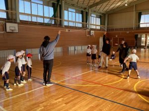 最初は「うまく跳べるかな?」と少し緊張気味だった子どもたち。なわが回ってくると足が止まってしまったり、タイミングが合わなかったりする場面もありました。