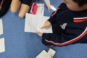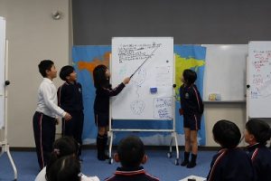 子どもたちは、「どう言えば外国の人に伝わるかな?」と考えました。