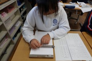 4年生が点字体験をしました。 点字教室のボランティアの皆さんに、点…