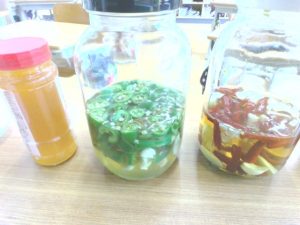 今回は、唐辛子とニンニクを煮込んだものと、ハラペーニョを酢と焼酎に漬け込んだものの2種類を準備しました。