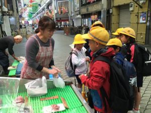 行先は明石魚の棚商店街とグリコピア神戸です。